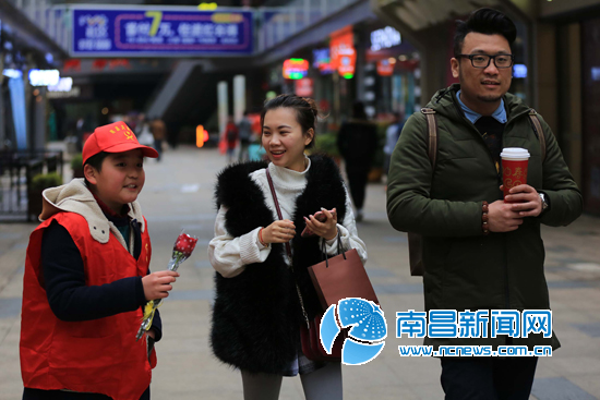 南昌新闻网讯 “买一朵鲜花,献一份爱心!”“送人玫瑰,手留余香。” 南昌慈善义工关爱分会的工作人员捧着鲜花吆喝着。2月14日下午,记者在红谷滩万达广场一处情人节鲜花义卖点看到这温情一幕。
