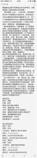 “如果找到合适的骨髓干细胞可以做移植手术,也许我的疾病可以得到痊愈,但手术费治疗费药费500万……”这位谢同学说,由于父母无法负担治疗费用,故开始网上众筹,前期的筹款金额为500万元。求助信的末尾还附上了他的个人信息,父母的身份信息、工作单位和联系方式。