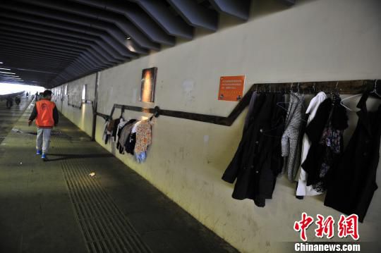 刚被取缔的北站隧道“爱心墙”又挂上了衣服。 刘冉阳摄