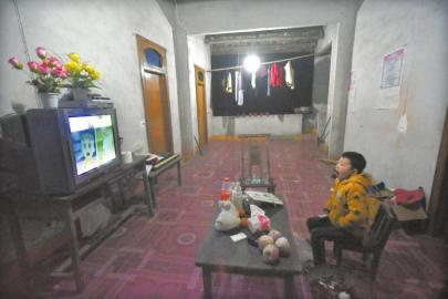 17日,邛崃老家,妈妈已返城,峰峰只好与动画片为伴。