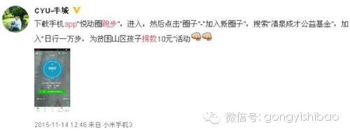 走步记数不知不觉成为了大家生活中必不可少的一项内容。在手机中安装运动APP,每日完成规定的步数就可以为关注的公益项目捐款,既锻炼了身体又参加了公益活动,一举两得。如下图——