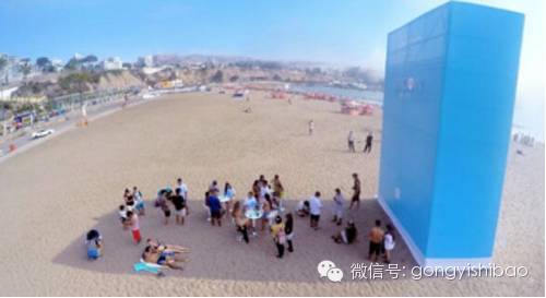 为了呼吁人们不要过久地曝晒在太阳底下,秘鲁抗癌机构的负责人找到技术人员,开发了一个特殊的阴影WiFi系统——用简易蓝色挡板在沙滩盖起一栋巨型建筑,再将阴影WiFi安装在建筑里。在这个蓝色的建筑下你可以享受WiFi网络服务,同时定向天线确保WiFi只发送到阴影处。而且传感器会跟踪一天里太阳未知的变化,从而改变WiFi天线的转动。当太阳变动,阴影位置跟着移动时,WiFi区域也会跟着变化。该系统一次可以允许250位使用者同时接入网络。