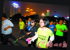 参加广马的视障跑者和视障引导员们开始赛前训练。(资料图片)广州日报记者记者王维宣、骆昌威摄