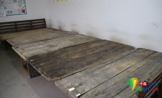 志愿者支教期间睡的门板组合的床。淮北师范大学李华锡供图。