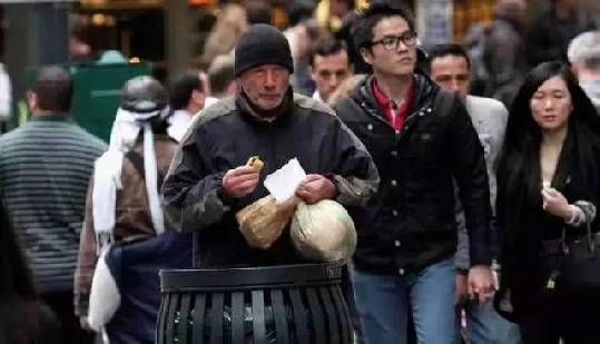 即使在繁华富裕的大都市,也有很多人食不果腹,衣不蔽体,只能在街头流浪。当你与流浪汉擦肩而过时,愿意将手中的食物分给他们吗?