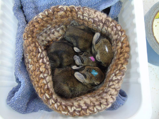 图为加拿大安大略一家野生动物救助中心为美洲棉尾兔所制作的毛线窝。(网页截图)