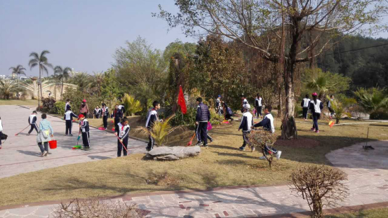 平远县实验小学近500名师生们走上街头,在平城花园广场附近的重点地段和重点区域开展卫生清扫活动。