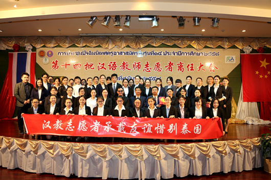 人民网曼谷3月8日电 (记者俞懿春)8日,中国国家汉办泰国志愿者管理教师工作组联合泰国教育部各教育委员会,在曼谷举办了2015-2016学年首场“第十四批汉语教师志愿者离任大会”,228名顺利完成教学任务的汉语教师志愿者即将离任回国。