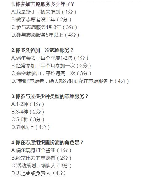 志愿者类型测试?做完下面的问题,看看您更适合参加哪种类型的志愿服务?