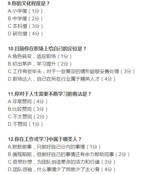 测试结果3到6分——志愿学徒7到9分——志愿高手10到12分——志愿掌门