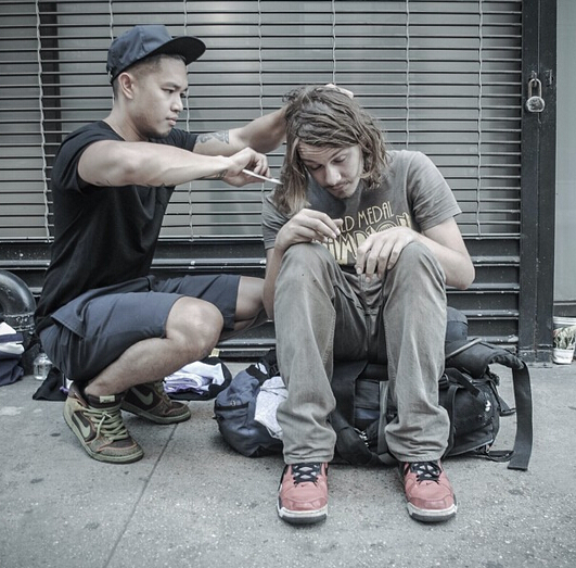 然而,走出高级理发厅,画风一变,他会成为“流浪汉们的免费理发师”。