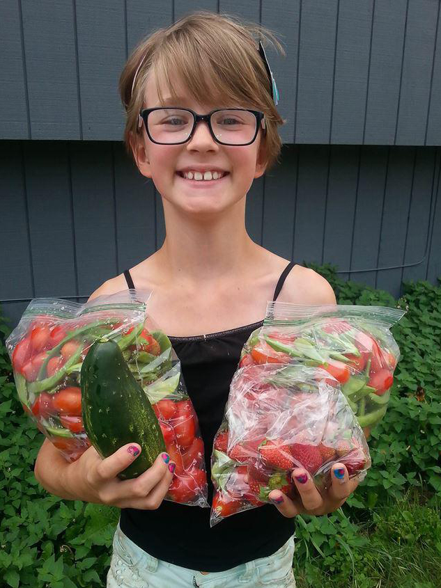 于是,她把家里的院子改造成菜地,白天种菜、除草、建栅栏,晚上抱着厚厚的书学种植经验。如今,她9岁了,四年来,她将每一份收获的食物洗干净,用袋子装好,上街发放给流浪汉。