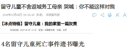 解决留守儿童的问题,除了政策上的努力,还需时间的等待。我们希望,未来,这样的新闻能越来越少。