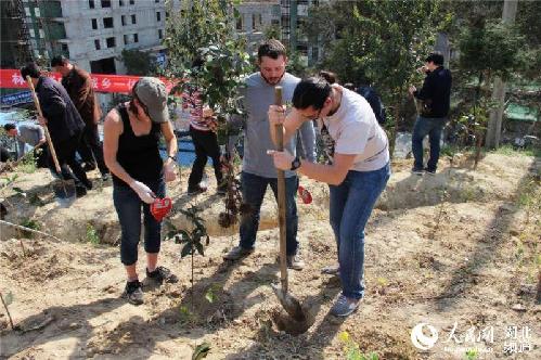 3月30日,多名外籍友人志愿者参加义务植树活动。