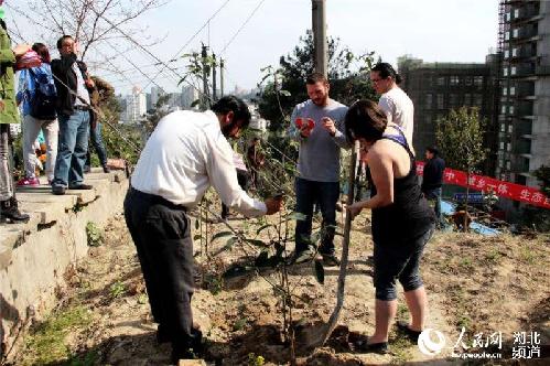 3月30日,多名外籍友人志愿者参加义务植树活动。