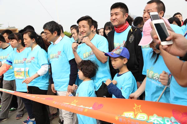 搜狐娱乐讯4月2日是第九个“世界自闭症日”,邹市明和儿子邹明轩一起参加了"爱星奔跑"公益跑活动,为500个自闭症人士筹集防丢失定位仪,以避免走丢事件再次发生。在《爸爸去哪儿》中以"吃货"形象深入人心的"胖轩",展示了惊人的运动能力,独自跑完”迷你马拉松“的全程4.2公里,成为最萌最有爱心的马拉松选手。