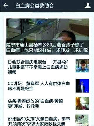 为减轻父母的压力,赶快筹集到40万元善款,黄绮雯想到了最近很火的“网络公益众筹”。在网络上,她关注到一个微信名为“白血病公益救助会”的公众号,成功加入后,对方让其提交相关求助证明信息和募款信,以便帮助向公众募款。