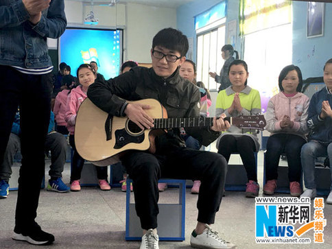 双盆小学的这间音乐教室是《我是歌手》与芒果V基金捐建的第一间音乐教室,在此之前,这里的留守儿童们并没有机会可以在课堂上接触到音乐。面对两位实习老师的第一节音乐课,孩子们显得非常兴奋。金志文老师更是使出浑身解数,不仅为孩子们弹唱了一首《为爱痴狂》,还将音乐知识倾囊相授。孩子们的才艺表演时间,他贴心的为表演的孩子的吉他调音,表演结束后更是送上自己签名照给孩子们留恋。音乐课后,金志文、王晰两位实习老师来到了操场上与孩子们玩起了跳绳、老鹰捉小鸡,经历了难忘的欢乐时光。