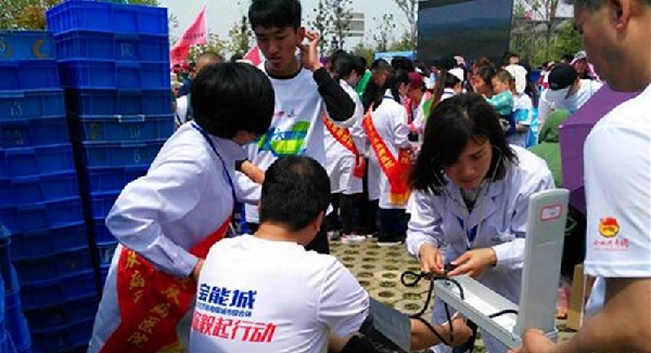 医护志愿者给参加者量血压