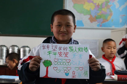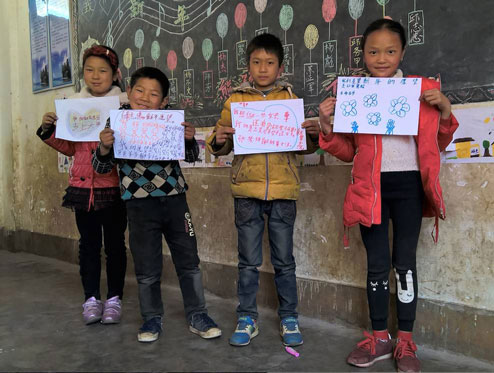 孩子们为全国各地的热心志愿者写下“回音卡”