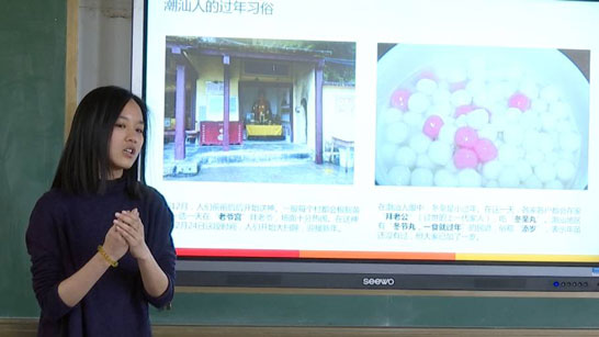 新鲜的课堂内容与轻松愉快的气氛让孩子们变得活跃起来。“东北的冰雕和雪雕,好像童话世界”“潮汕过年真有意思,还要拜灶公!我们家只拜爷爷奶奶!”“老师,黄晓明哥哥在和我们打招呼!”孩子们的天真和投入让人感动。