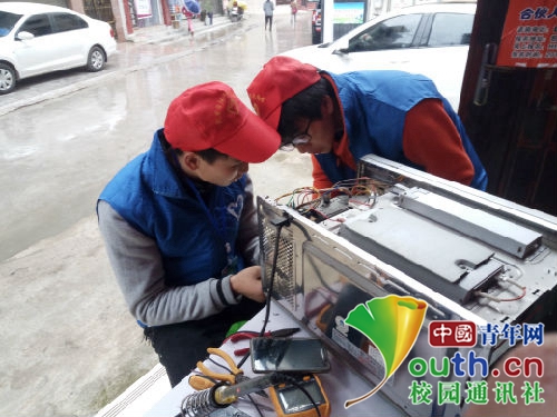 在社区街道进行义务家电维修。图由邰诗梅提供