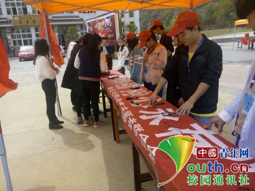 志愿者们开展的“千人签字”活动。图由邰诗梅提供