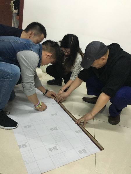 志愿者剪裁壁纸为阳光家园装饰房间