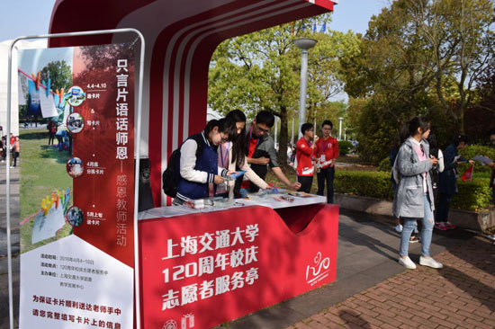 志愿者正在校庆大会会场外的岗亭工作。上海交通大学 王欣芸/摄