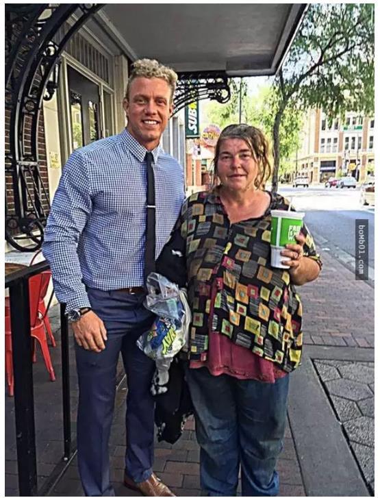在人们的印象中,街友大多有各种各样的恶习,比如抽烟、酗酒或者吸毒,但事实却不是这样。Greg Smith是佛罗里达州奥兰多一家健身机构的老板,他每天都穿着西装上下班,路上会有不少街友向他乞讨金钱或者食物。但那天,他在街角遇到一名无家可归的女子时,她出乎意料地却没有这样做,而是只是说:「早上好,先生,祝你有美好的一天,上帝保佑你。」