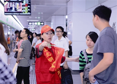 志愿者的微笑,是杭州最好的名片。我是地铁志愿服务队的一名志愿者,每天都参与地铁文明劝导志愿服务。和我一样,全市共有上千名志愿者在地铁客运中心、火车东站、武林广场、龙翔桥、火车城站、婺江路、湘湖等站点参与咨询引导、维持秩序等服务。当我们身披“先下后上,文明乘车,一米线迎嘉宾”的绶带时,感受到责任的重大和意义的深远。在我们的劝导下,大部分的乘客都能自觉遵守秩序。接下来,我们仍然会在地铁等城市文明的窗口,继续传播文明,传递正能量。我奉献,我快乐!