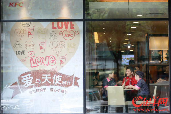 据了解,该餐厅设立于2011年底,2012年6月转型为“天使餐厅”,是肯德基在全国设立的首家“天使餐厅”,“天使”员工的比例也从最初的30%增加到现在的80%。百胜餐饮中国事业部营运副总裁赵文欣表示,设立“天使餐厅”是为了给特障人士提供一个实现自我价值的平台,帮助他们更好地融入社会。
