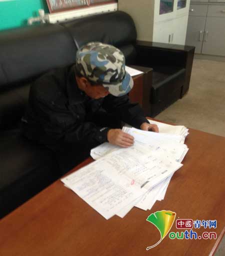 图为下桥小学保安胡塞在帮宁夏大学第十三届研之团成员王喜斌整理试卷。王喜斌 供图