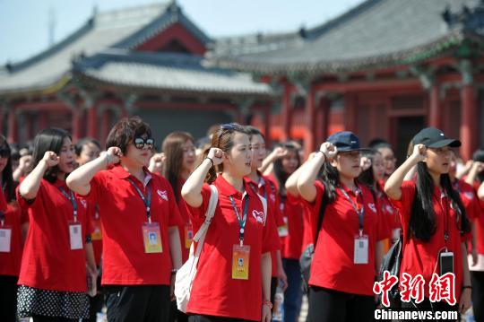 5月18日,辽宁沈阳,500名成人志愿者和50名小小志愿者在沈阳故宫大政殿前正式宣誓,并在当天上岗为游客服务。据了解,2015年社会志愿者在沈阳故宫博物院累计为游客提供了13423小时、3889人次的讲解和咨询服务。