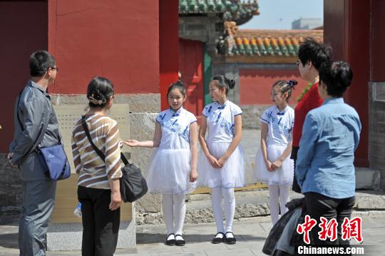 小小志愿者们“组团”为游客介绍宫殿的故事。 孙昊声 摄