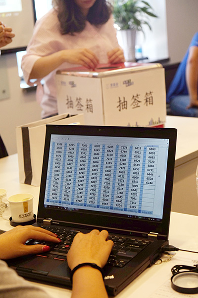 抽签过程由为爱同行参与选手代表、志愿者代表、捐赠人代表、见证律师及媒体共同监督。按照活动规则,队伍满四人方能获得抽签资格,同时为了鼓励公益筹款积极和高效的队伍,于5月25日前完成4000元善款募集的队伍可获得直通名额。在抽签现场,工作人员首先公布了199支直通队伍名单,并现场将剩余具备抽签资格的450支队伍名单裁剪投入抽签箱,由工作人员轮流抽取,抽出301支中签队伍及100支候补队伍。