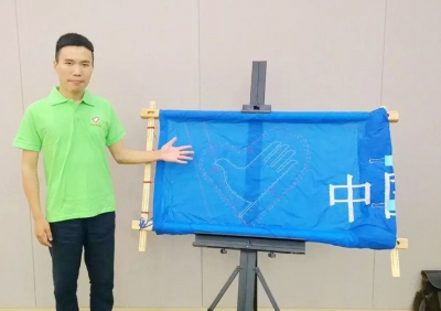 6月3日,作为2015年度江苏省十佳青年志愿者代表之一,扬州自然墙绘公益服务社创始人左涛在南京参与了手绣“飞天旗帜”。