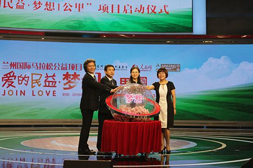 人民网北京6月6日电(史雅乔)6日,由人民网与兰州马拉松组委会、北京中迹体育管理有限公司(以下简称中迹体育),中国残疾人福利基金会共同主办的“公益+马拉松”新模式 “爱的民益-梦想1公里”公益项目启动仪式在京举行。“爱的民益-梦想1公里”是一次跨界尝试,与即将到来的2016兰州国际马拉松赛事相结合,中国残疾人福利基金会秘书长张雁华,兰州市人民政府副市长戈银生,人民网总编辑余清楚,人民网副总裁唐维红,人民日报体育部副主任薛原,中国马拉松品牌运营专家张思杰,中迹体育董事康娟,以及悉尼奥运会竞走冠军王丽萍出席了启动仪式。
