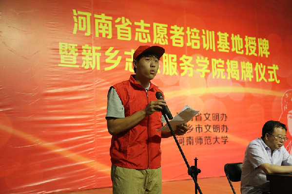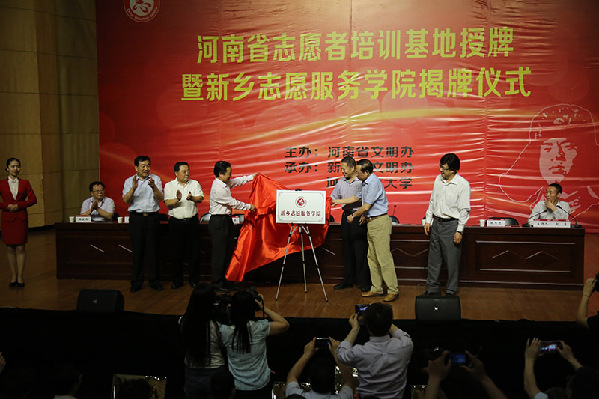 6月2日上午,河南省文明办、省民政厅在河南师范大学为首批志愿者培训基地授牌,郑州大学、河南大学、河南师范大学、河南省委党校、河南省团校成为全省首批志愿者培训基地。当日,新乡市与河南师范大学联合成立的新乡志愿服务学院揭牌。这标志着河南省志愿服务的专业化建设又迈出了重要一步。