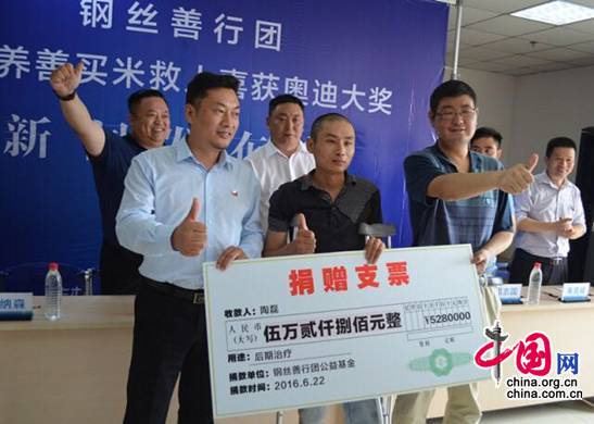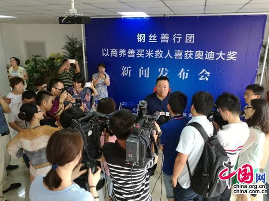 (钢丝善行团以商养善“买米救人”喜获奥迪大奖新闻发布会现场)
