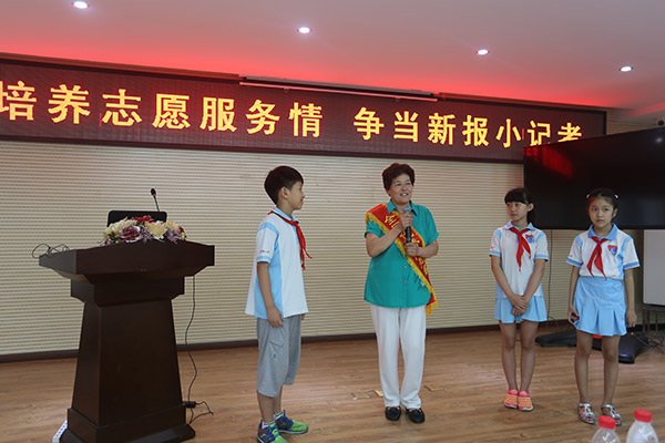 会上,由每日新报的李汝斌主任为新兴街记者站授牌、授旗,宣布每日新报新兴街记者站正式成立。随后,李主任为西康路小学的学生们进行了关于什么是新闻,如何编写新闻,如何挖掘社会热点等内容的培训,让学生们受益匪浅。培训结束后,李主任现场指导了几名同学对阳光奶奶、全国优秀志愿者吕文霞、杨凤珍进行了模拟采访,在实践中增强了新闻采写汇编的能力。模拟采访结束后,和平区文明办赵堃主任和新兴街党工委孙建良书记为学生们颁发了记者证,鼓励他们更多的参与社会实践,用他们的视角,采写发掘更多优秀志愿者的故事。