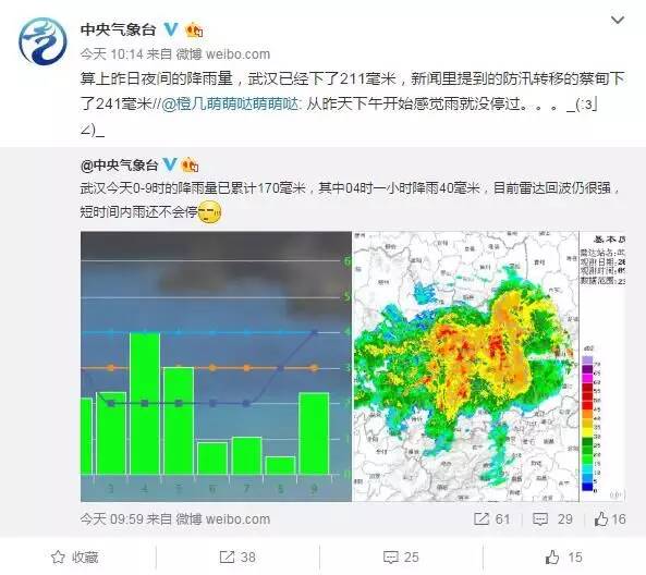 据中央气象台微博数据,在7月6日零点~上午9点这9个小时,武汉降雨量就高达170毫米!