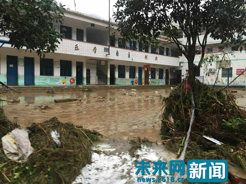 2016年7月5日,铜仁当地的一所小学已经被洪水淹没,受访者供图。