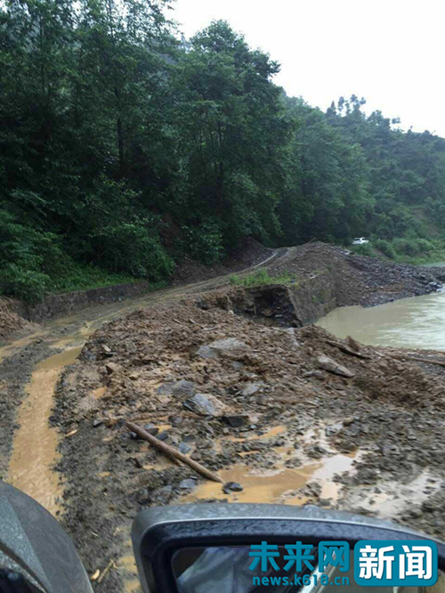 2016年7月5日,暴雨导致贵州铜仁多地放生滑坡泥石流,救援车辆频频受阻,受访者供图。