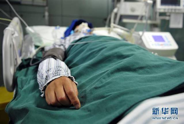 安徽省含山县环峰镇三龙村遭受特大暴雨袭击,该村54岁的党支书尹建平连续五个昼夜带领村干部和村民抢险救灾排除险情,因过度劳累导致突发脑溢血,倒在抗洪第一线。7月9日,尹建平被临床诊断为脑死亡。新华社记者王雷摄