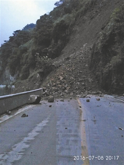 7月8日晚,国道318线K2681天全县小河乡境内(小地名:火夹沟)发生塌方,约1.1万立方米的塌方量致国道318线断道,灾情未造成人员伤亡。