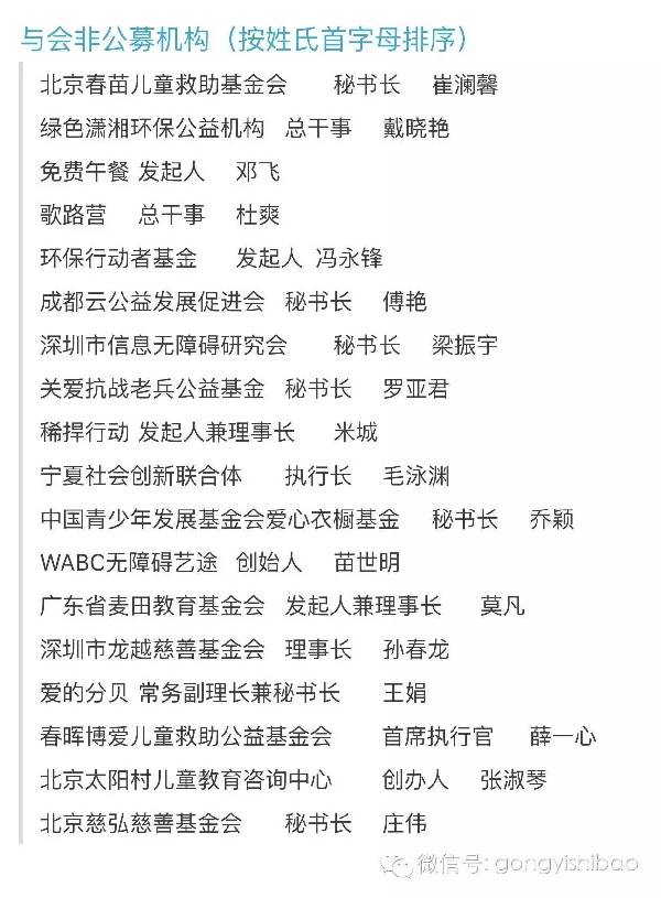 可以看出,“中国互联网公益峰会”参与者均为中国公益领域的机构负责人,满屏幕的专业气息。