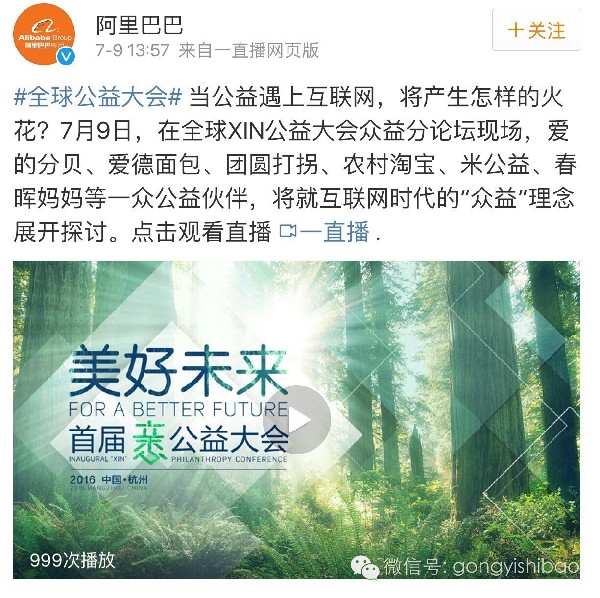 6月16日,腾讯刚在深圳办了一场“中国互联网公益峰会”。7月9号、10号,阿里巴巴就在杭州搞了一场“全球公益大会”。为的都是公益这方面的事儿,喊得也都是响当当的名字。