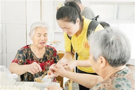 大学生志愿者和老人一起包饺子通讯员 陈荣华 吴洋洋 摄