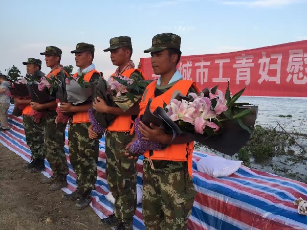 一个党员就是一面旗帜,一位官兵就是一股力量,一名志愿者就是一份支持,一名团员青年就是一根标杆。哪里灾情最严重,哪里就有党员在服务;哪里形势最危急,哪里就有官兵在战斗;哪里群众最需要,哪里就有村官在奉献。共青城市广大党员、官兵、团员和团干用实际行动谱写了一曲对党忠诚、对人民负责的赞歌,诠释了共产党员和武警官兵无私无畏、勇敢顽强的优良作风,为夺取防汛抗洪扬起了“旗帜”,凝聚了“力量”,树立了“标杆”,正是这种不畏洪水、不惜生命、不分昼夜、心系群众的忠诚守护,赢得了广大干部群众的点赞,保证了我市抗洪抢险工作的阶段性胜利。